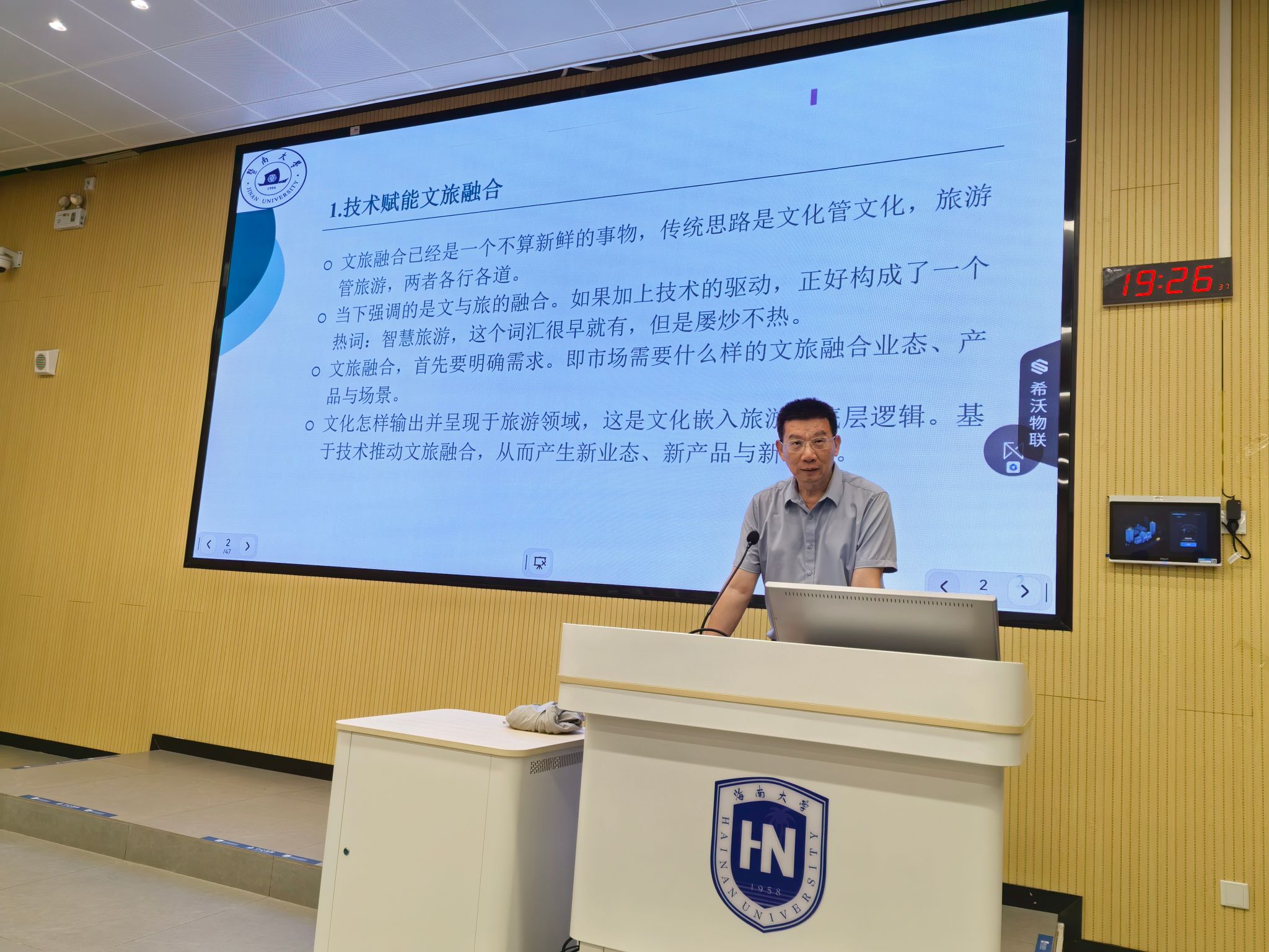 针对海南发展,章牧教授提出三点建议:完善顶层设计,推动文化旅游融合新业态建设;积极推进品牌矩阵建设,利用离岛免税政策优势;通过文化数字化赋能,推出“云旅游”模式。他梳理了城镇化、农林业、现代服务业、文化、健康医疗、研学、体育赛事、会展等八条文旅融合路径。