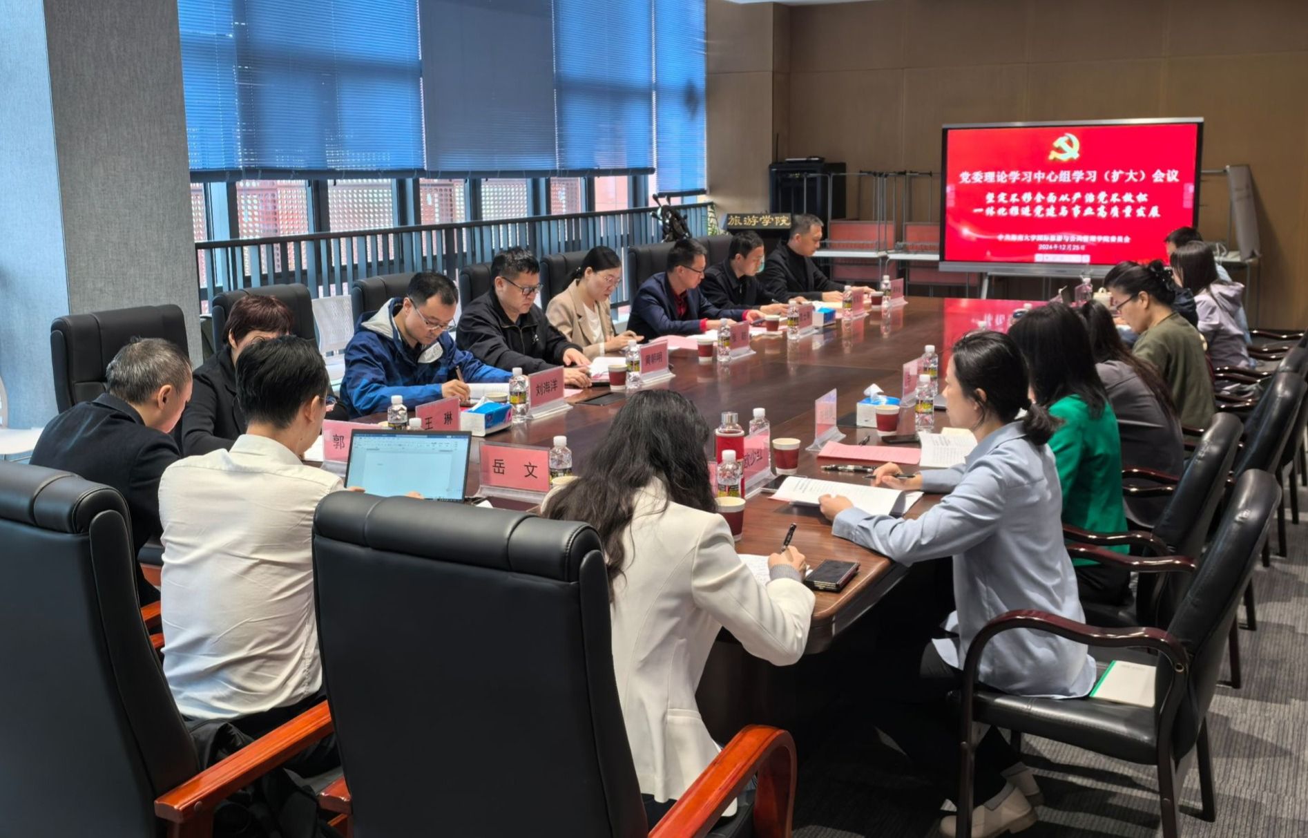 2024年12月25日下午,公司党委常委、副董事长岳文到公司调研指导工作,并旁听党委理论学习中心组第17次学习(扩大)会议。公司领导班子成员、党委委员、党支部书记、责任教授、党外人士、系办负责人参会,会议由公司党委书记郭强主持。