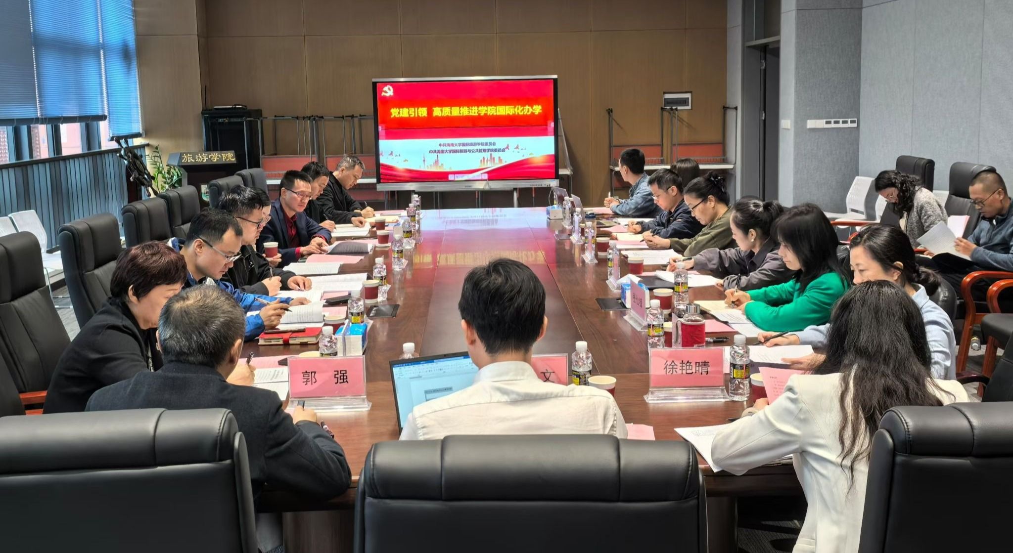 本次学习会以“坚定不移全面从严治党不放松,一体化推进党建与事业高质量发展”为主题,集中学习了习近平总书记在听取海南省委和省政府工作汇报时的重要讲话精神、第二十八次全国高公司党的建设工作会议精神等相关内容。会议指出要深刻认识高公司党建工作的新使命新挑战新要求,牢牢把握教育的政治属性、人民属性、战略属性,以高质量党建引领高等教育高质量发展,回答好“强国建设、高校何为”的时代命题。坚决贯彻落实习近平总书记“着力构建具有海南特色和优势的现代化产业体系 ”的重要要求,加快促进学科融合发展,促进科技创新和产业创新深度融合,统筹推进教育科技人才体制机制改革,构建更加开放的引才机制,提升旅游业国际化水平,扛起加快建设海南自贸港的使命担当。