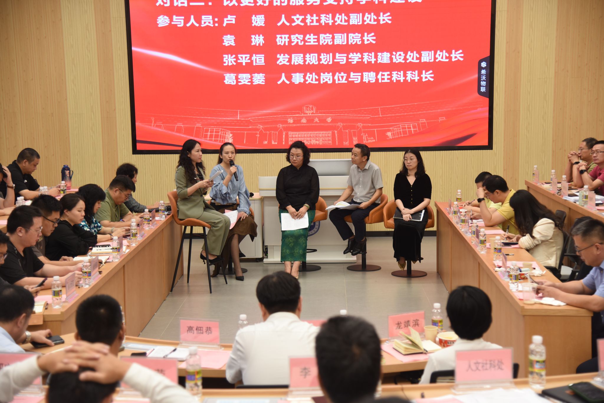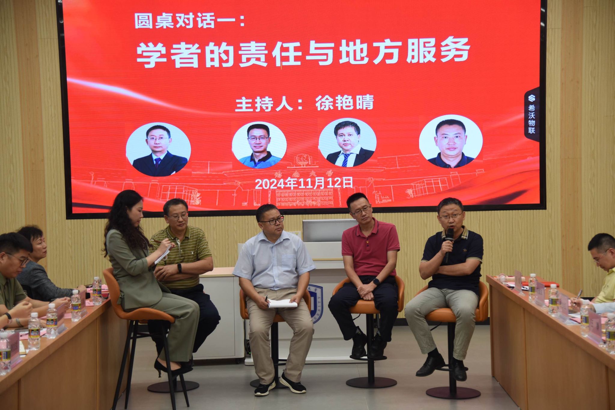 随后,研讨会以圆桌对话的形式进行热烈的研讨,由bw必威西汉姆联官方网站执行经理徐艳晴主持。黄朝明、刘德浩、范士陈、尹正江四位教授围绕“学者的责任与地方服务”进行交流发言。bw必威西汉姆联官方网站人文社科处副处长卢媛、研究生院副经理袁琳、发展规划与团队建设处副处长张平恒、人事处岗位与聘任科科长葛雯菱等公司各职能部门围绕“以更好的服务支持团队建设”开展热烈的讨论。