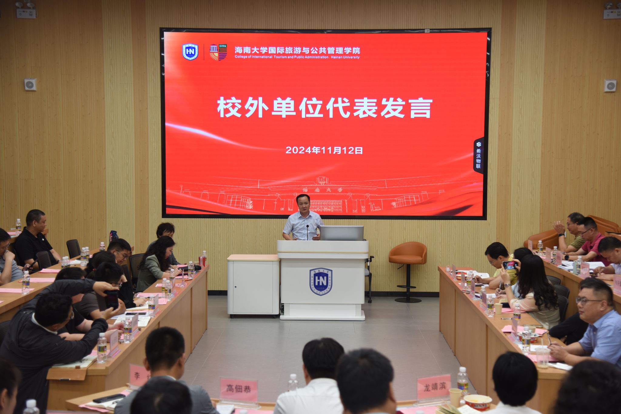 中共海南省委政策研究室副主任刘旭、海南省旅文厅政策法规处一级调研员李红、海口市龙华区副区长龙靖滨代表政府部门进行了发言,希望进一步加强学科融合,凝练学科特色,优化专业设置,完善人才培养体制机制,创新科研成果转化、以更高质量的标准来服务与推动地方经济社会发展。