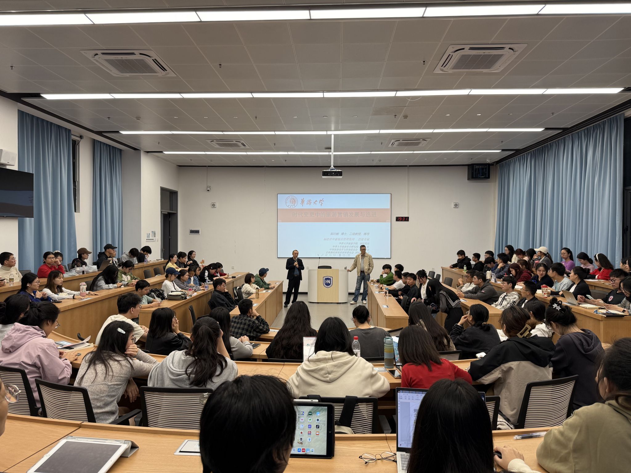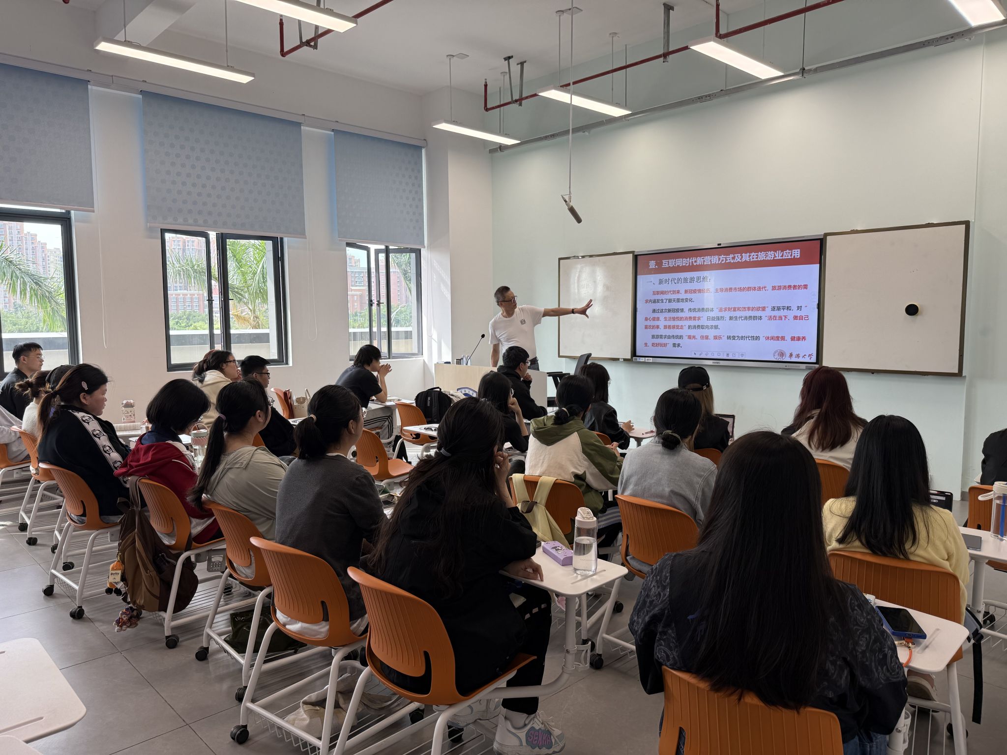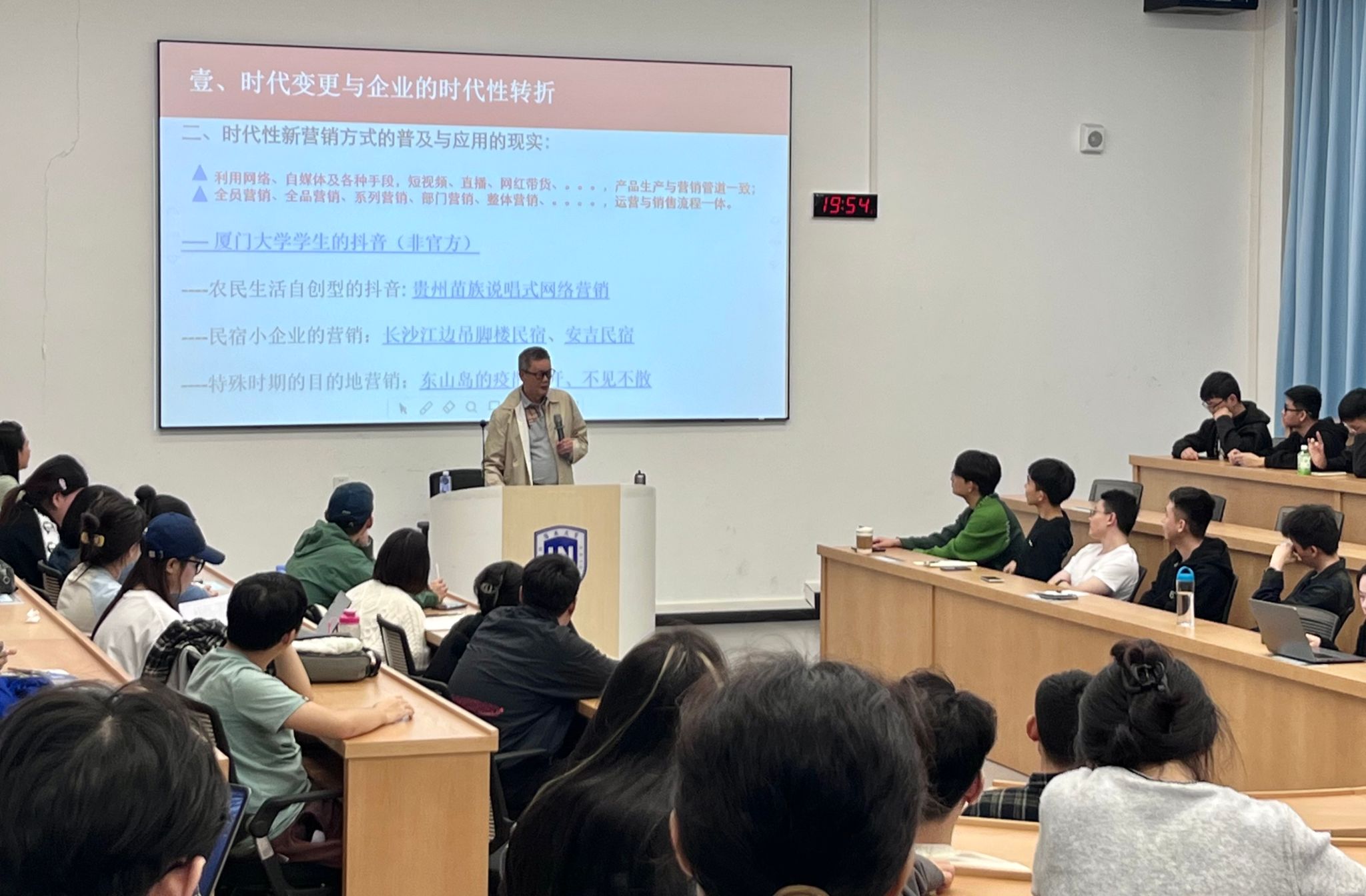 当日晚上,郑向敏教授在观澜湖校区3-A103教室举办了面向全院师生的以《时代变更中的旅游营销发展与迭进》为主题的学术讲座。讲座开始前,bw必威西汉姆联官方网站郭强书记代表公司向郑向敏教授的到来表示热烈的欢迎和衷心的感谢。郭书记表示,郑教授作为旅游行业的著名专家,拥有丰富的理论和实践经验,相信他的讲座将为同学们带来宝贵的启示和收获。随后,郑向敏教授结合自己多年的研究和实践经历,运用大量生动形象的案例,深入浅出地分析了时代变更对旅游企业的影响以及市场营销理念和方式的变革。他从时代变更与企业的时代性转折入手,详细阐述了企业如何跨渠道整合营销,形成协同作用;接着,他从数字化时代市场营销的角度,探讨了新的市场环境下旅游营销的创新策略和发展趋势。郑教授的讲座内容丰富、条理清晰,既有理论深度,又贴近实际,赢得了在场师生的阵阵掌声。