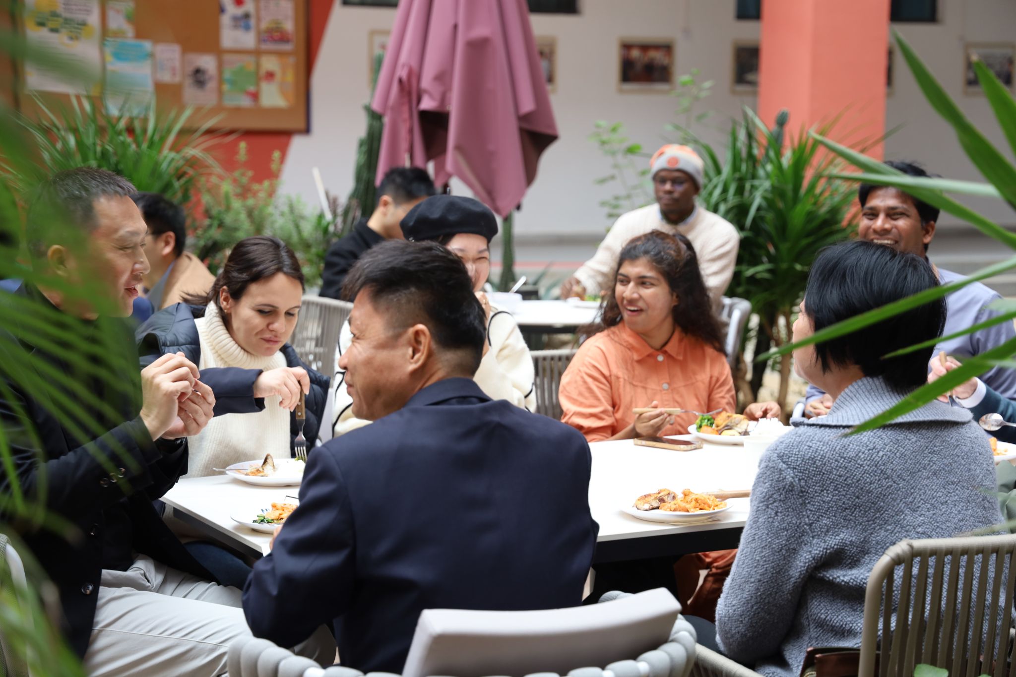 在共享午餐环节,教职工们围坐在一起,品尝由NY客餐厅悉心准备的美食,在美味佳肴间谈笑风生,回忆过去一年中的工作成果与点滴,同时畅想来年的新目标与梦想。彼此间的交谈在轻松愉悦的氛围中渐入佳境,距离在欢声笑语中逐渐拉近。