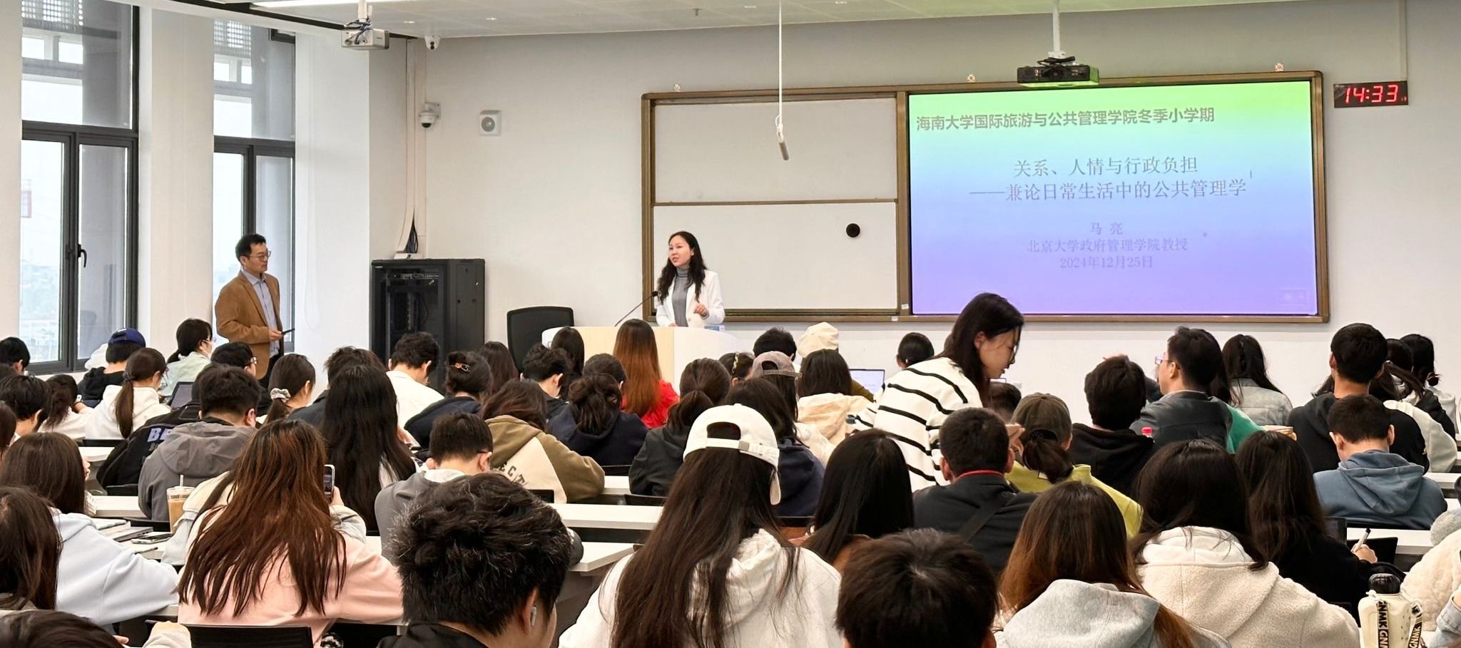 2025年12月25日,北京大学政府管理公司马亮教授应邀为公司学子作题为《关系、人情与行政负担——兼论日常生活中的公共管理学》的专题报告。报告会在bw必威西汉姆联官方网站观澜湖校区3-B301举行,由公司执行经理徐艳晴教授主持,2022级、2023级行政管理本科生以及2023级、2024级研究生共同参加了本次讲座。