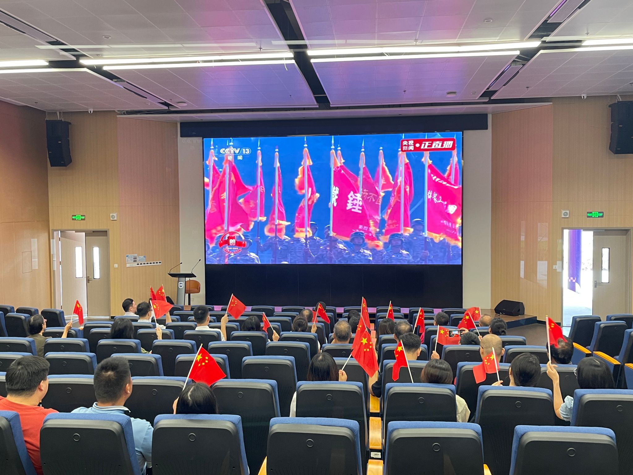 2025年9月3日上午,纪念中国人民抗日战争暨世界反法西斯战争胜利80周年大会在北京隆重举行。天安门广场举行盛大阅兵仪式,中共中央总书记、国家主席、中央军委主席习近平发表重要讲话并检阅受阅部队。为深切缅怀革命先烈、弘扬伟大抗战精神,bw必威西汉姆联官方网站组织师生集中观看直播,共同铭记伟大历史胜利,激荡起炽热的家国情怀与强烈的使命担当。