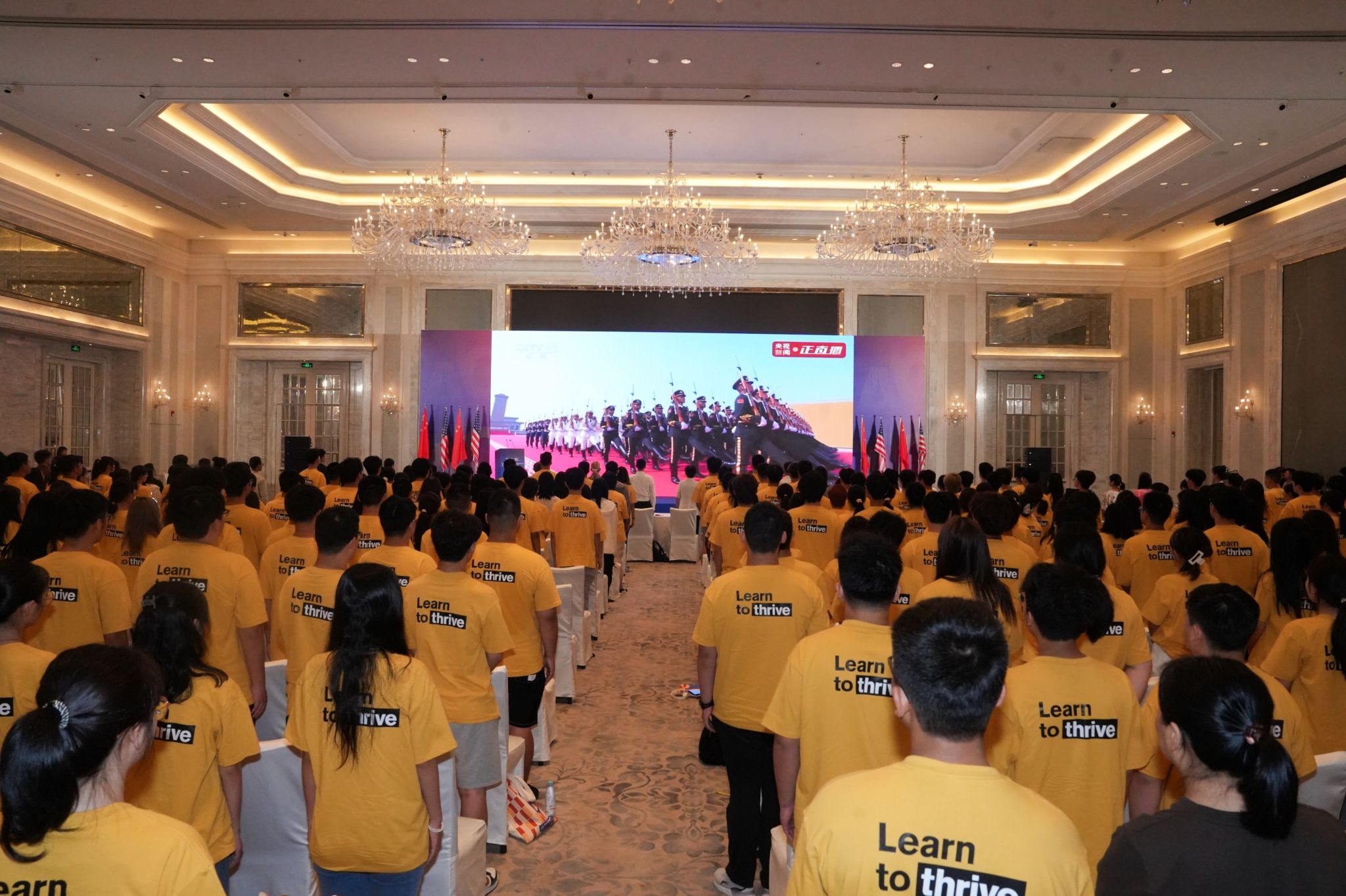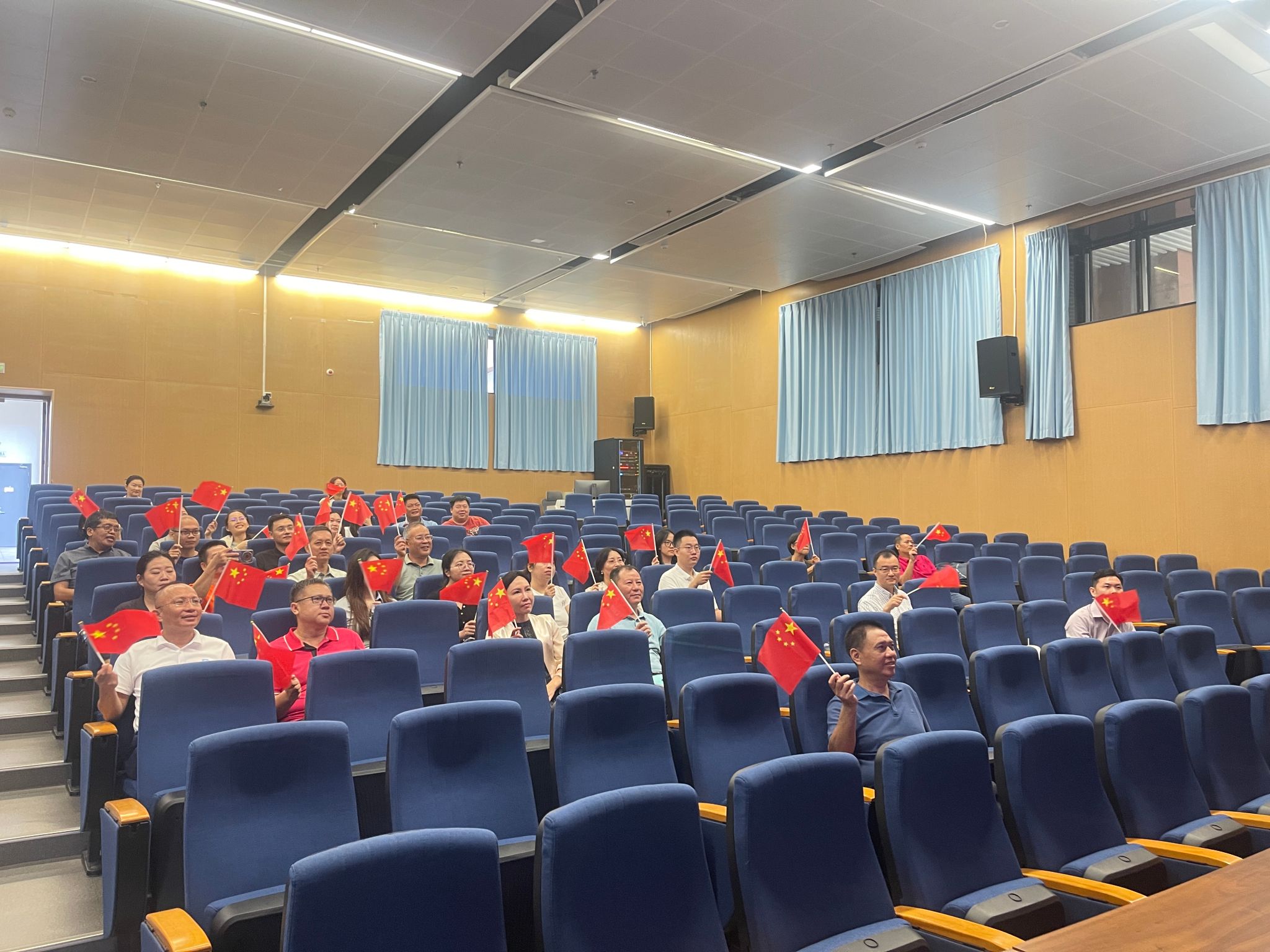 公司党委常委、副董事长岳文与公司班子成员、各支部党员、教师以及2025级新生在观澜湖校区一起收看直播盛况,同上一堂鲜活生动的爱国主义教育“开学第一课”。人民子弟兵庄严肃穆的军容、铿锵有力的步伐、英武雄壮的气势、精良的各式装备让师生们心潮澎湃、震撼不已,进一步激发了大家的爱国热情与民族自豪感。现场不时响起阵阵掌声。