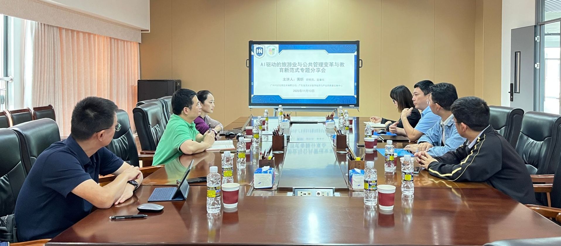随着人工智能技术的飞速发展,其在教育上的运用展现出更多可能性。为促进教育生态全面转型,推进人工智能赋能教育全面深化,2025年11月13日下午,广州市问途信息技术有限公司董事长黄昕博士应邀莅临公司,在观澜湖校区2教4105会议室作题为“AI驱动的旅游业与公共管理变革及教育新范式”的专题分享。公司副经理何彪,旅游管理专业责任教授范士陈、李萍及公司各系办教师代表参与分享会,现场交流气氛热烈。