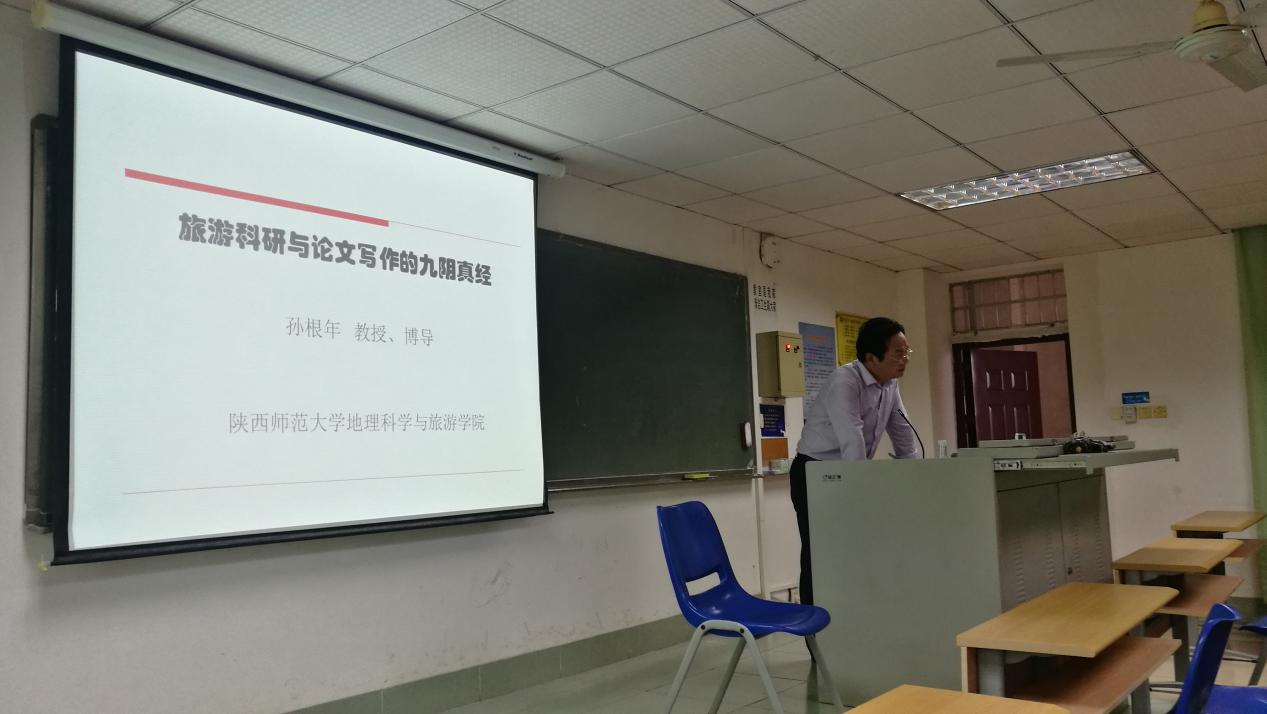 应旅游公司地理科学与规划系及MTA教育中心邀请,2019年10月31日下午,陕西师范大学地理科学与旅游公司博士生导师孙根年教授为公司教师与研究生作了题为“旅游科研与论文写作的九阴真经”的学术报告,公司教师、及博士与硕士研究生共计40余人参加了此次学术交流活动。