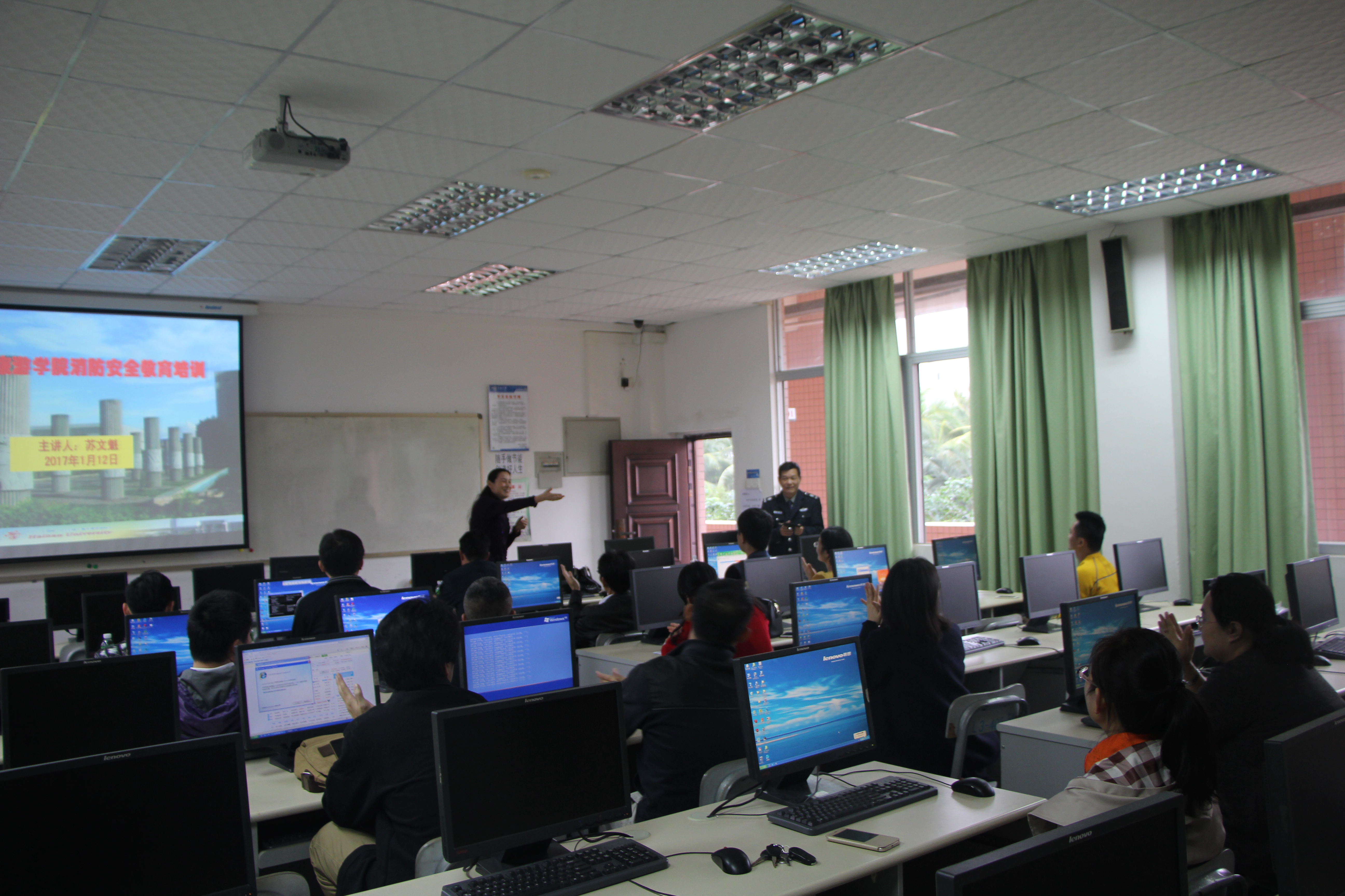 为进一步提高公司师生安全意识,掌握消防器材使用方法,提高安全技能,1月12日下午,公司邀请保卫处苏文魁副处长及相关科室同志一行3人,在公司6教201室举行了消防安全教育培训。培训活动由公司党委韩淑梅书记主持,公司实验中心、学工办全体人员以及行政办、教务办、中爱项目办等办公室有关人员参加了培训活动。