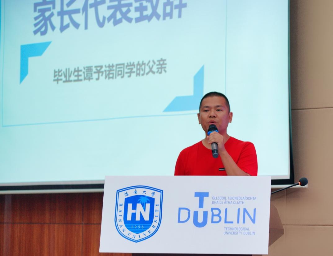旅游公司郭强经理作为中方领导代表致辞,他回顾并赞许了2022届中爱项目毕业生们努力拼搏的成绩,亲切的话语声中透露出对毕业生们的热烈祝福和殷切期望。