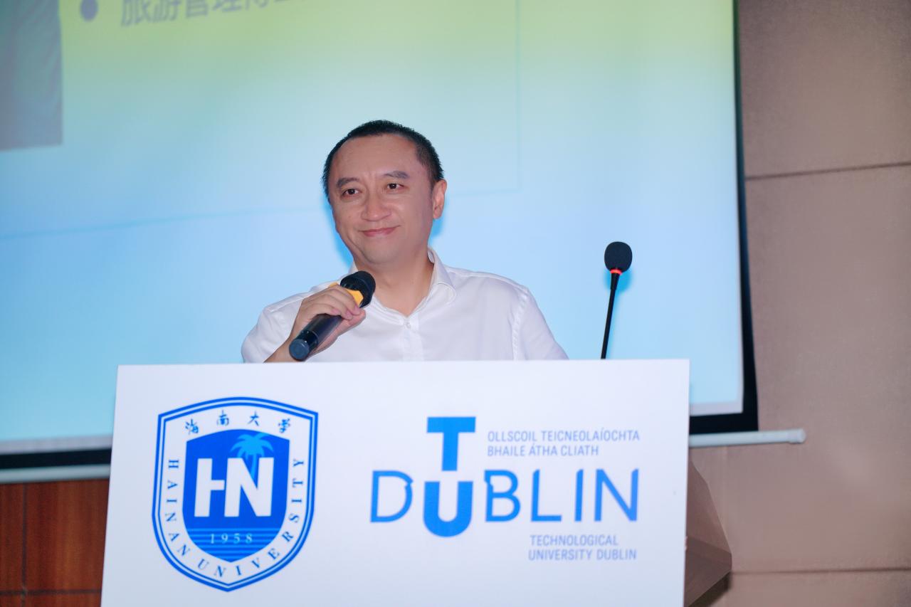 海南国际经济发展局姬国辉副局长作为企业代表致辞,他特别肯定了海南自由贸易港建设新形势下会展业的发展前景,指出会展行业作为新兴朝阳产业将在海南大有可为,并强调了校企合作对于会展业人才培养的重要性。