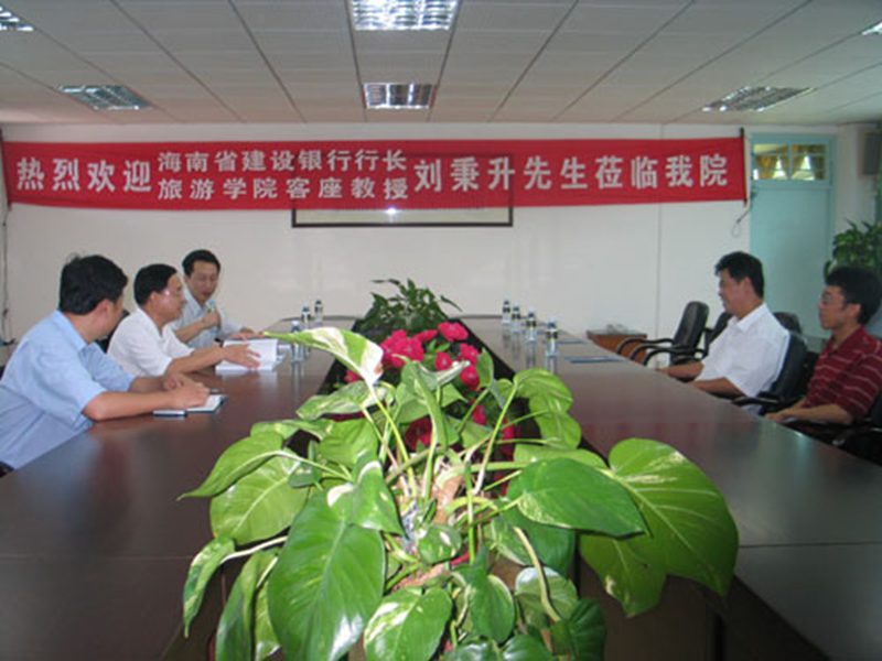 安应民经理首先向刘秉升一行介绍了公司的基本情况及发展趋势,希望省建行对公司给予大力支持。刘秉升行长表示,教育事业是一项可持续发展的事业,建设银行愿全力支持。海南要发展,人才是关键,政府、银行、社会方方面面都应注意文化教育事业,要共同营造良好的文化氛围。座谈结束后,刘秉升行长视察了公司的基建情况,对公司的规划与环境建设给予了充分的肯定。