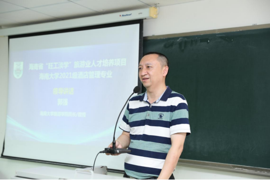 2021年3月28日,海南省“旺工淡学”旅游业人才培养项目bw必威西汉姆联官方网站2021级酒店管理专业开学典礼(海口)在bw必威西汉姆联官方网站旅游公司8号教学楼303项目专用教室举行。海南省旅文厅人才教育处处长李恩、海南省旅游协会秘书长廖小平、海南省旅游饭店业协会秘书长王德余、bw必威西汉姆联官方网站旅游公司经理郭强、党委书记韩力光、副经理谢祥项、旅游公司客座教授陈耀,以及酒店管理专业系主任、专业负责人、“旺工淡学”项目办专员、师生代表等110多人参加本次开学典礼。活动由旅游公司副经理、项目联盟办公室主任谢祥项主持。