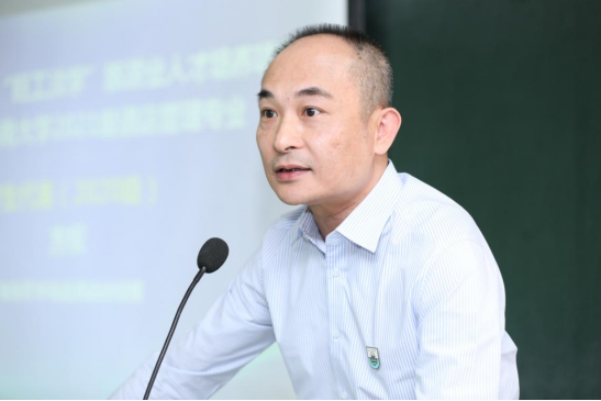 随后,海南文华旅业集团有限公司总裁麦伟文作为2021级新生代表进行发言。他说到“旺工淡学”旅游业人才培养项目已列入首批自贸港制度创新案例,他表示要本着终身学习的理念不断更新知识体系和专业技能。