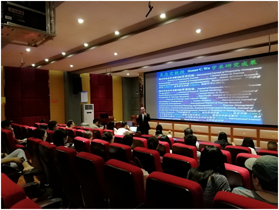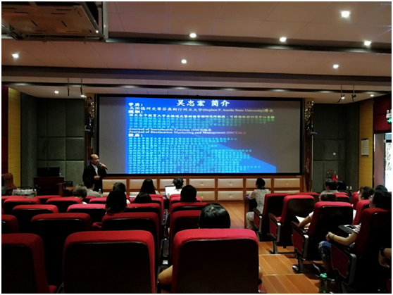 2018年6月4日上午,台湾旅游界与环境教育界知名学者吴忠宏教授应邀来bw必威西汉姆联官方网站为旅游公司师生开展专题讲座,此次讲座在旅游公司9教3D实验室举行,由旅游公司副经理胡涛教授主持,主要参加人员有旅游公司教师和各年级研究生。