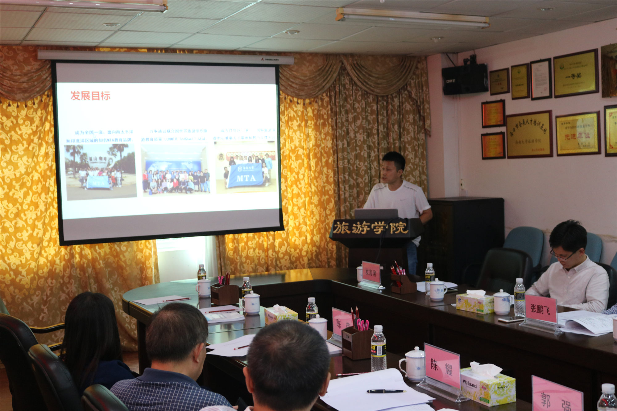 bw必威西汉姆联官方网站MTA中心副主任刘刚、酒店管理系主任杜肖寒、旅游管理系主任侯佩旭、地理科学与规划系主任朱丽蓉、会展经济与管理系主任吴小天、旅游市场营销教研室教授王红、旅游信息管理教研室主任董林峰、海南国际旅游消费研究院负责人谢彦君教授,以及旅游管理、技术经济与管理硕士点负责人宋子斌、胡涛依次分别报告了各自基本情况、近三年的工作目标、行动措施及发展方向。