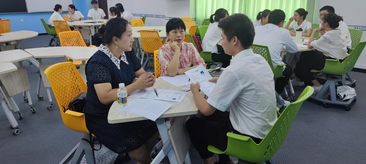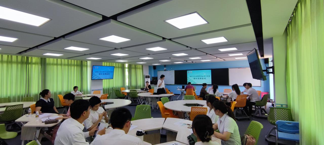 分享结束后,模拟面试按照简历投递、英文自我介绍、专业知识问答等环节井然有序地开展,每一位同学都以饱满的姿态参加本次面试,他们展现了海大酒管人的精神面貌。经过两个小时紧张的面试,所有同学都得到了属于自己的一份答卷。