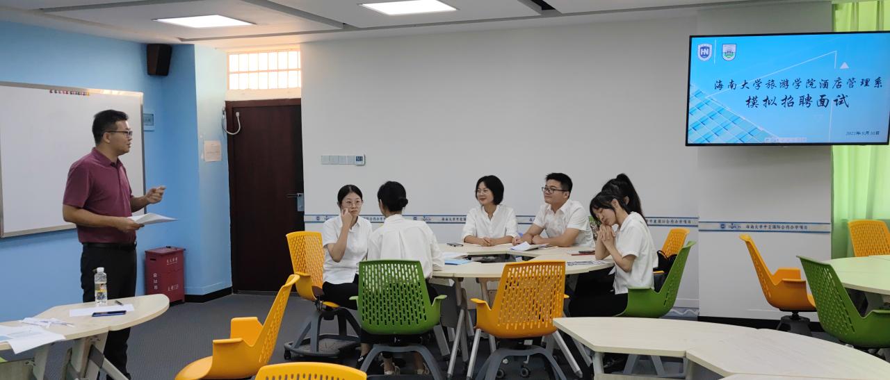 为提高毕业生就业面试能力和技巧,bw必威西汉姆联官方网站旅游公司酒店管理系组织策划了酒店管理专业模拟招聘面试的活动。模拟面试于2021年9月30日下午13:00在旅游公司8教502室开展,整场活动由酒店管理系系主任刘雪莲老师主持,谢祥项副经理、杜肖寒老师和高蓓蘅老师以面试官身份出席。活动过程中四位老师先后做了相关分享,对有意向在酒店行业就业的16位同学进行了一对一的招聘面试和就业的指导。