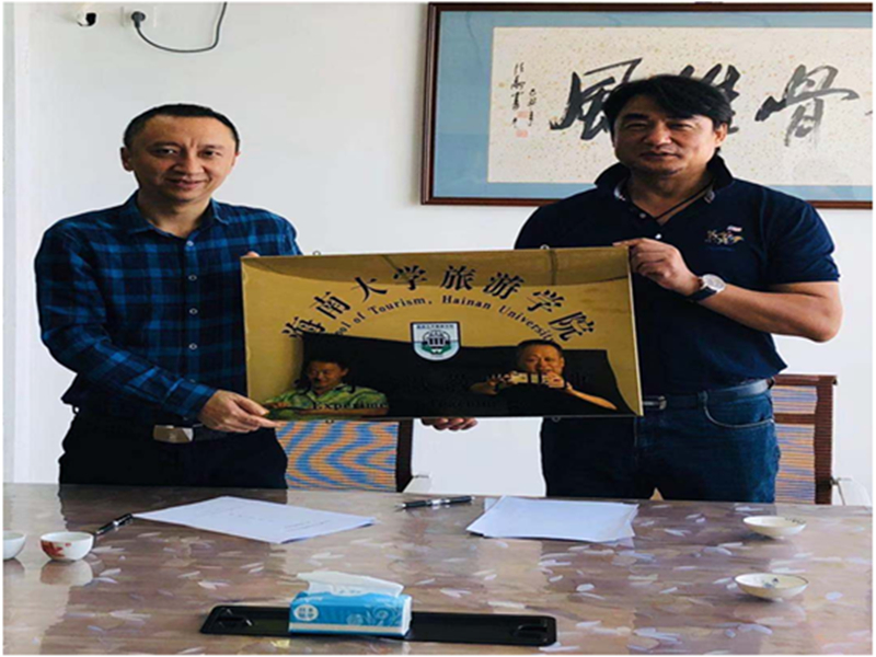 2019年11月23日,旅游公司郭强经理、侯佩旭副经理及地理科学与规划系王凤霞、张晓波、戴玲等老师在江苏省建筑设计研究院有限公司海南分公司签约合作协议和授牌、共建教学科研实习实践基地。