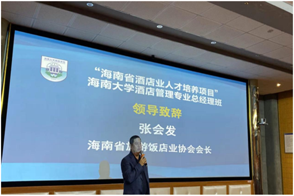典礼开始,首先由海南省旅游饭店业协会会长张会发先生致辞。张会长在发言中着重强调了当下海南酒店行业在全国的口碑问题,希望各位学员能通过学习来做好海南酒店的口碑,将海南酒店行业打造成全国的业界标杆。
