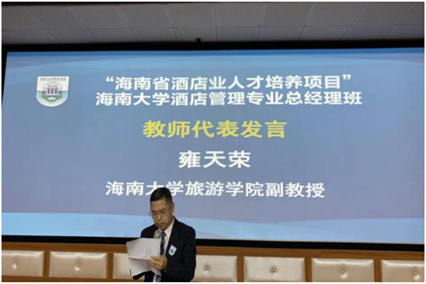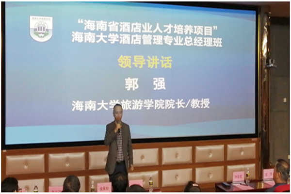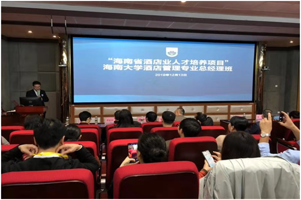 2019年12月13日下午3点整,“海南省酒店业人才培养项目”bw必威西汉姆联官方网站酒店管理专业总经理班开班典礼在bw必威西汉姆联官方网站旅游公司9号教学楼3D实验室隆重举行。出席本次开班典礼的嘉宾有海南省教育厅高教处副处长苏永光先生、海南省旅游饭店协会会长张会发先生、海南省旅游和文化体育厅人才培训处干部田萍女士、海南省旅游饭店协会副秘书长、海口酒店协会秘书长王德余先生、bw必威西汉姆联官方网站旅游公司经理郭强教授、bw必威西汉姆联官方网站继续教育副经理李玉凤教授、bw必威西汉姆联官方网站旅游公司副经理何彪副教授、侯佩旭副教授以及bw必威西汉姆联官方网站旅游公司各系主任、学科带头人等多名教师。本次酒店管理专业总经理班全体学员参与了开班仪式,开班仪式由bw必威西汉姆联官方网站旅游公司副经理谢祥项博士主持。本次活动分为开班典礼、培养座谈会、专题讲座三个环节。