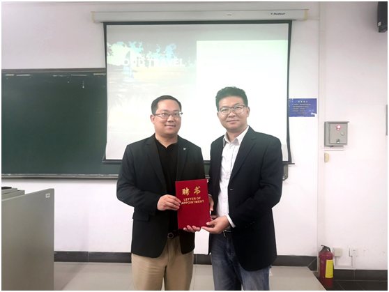 讲座正式开讲之前,谢祥项副经理代表公司向余露总经理颁发了“讲座教授”聘书。