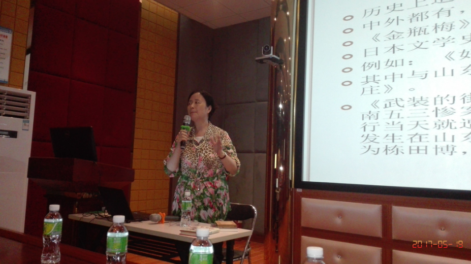 2017年5月19日下午,山东师范大学博士研究生导师李光贞教授、应公司外国语公司经理金山教授的邀请,于9号教学楼3D实验室成功举办了以“日本近代文学史上的遭禁小说:《武装的街巷》《台儿庄》”为题的学术讲座。