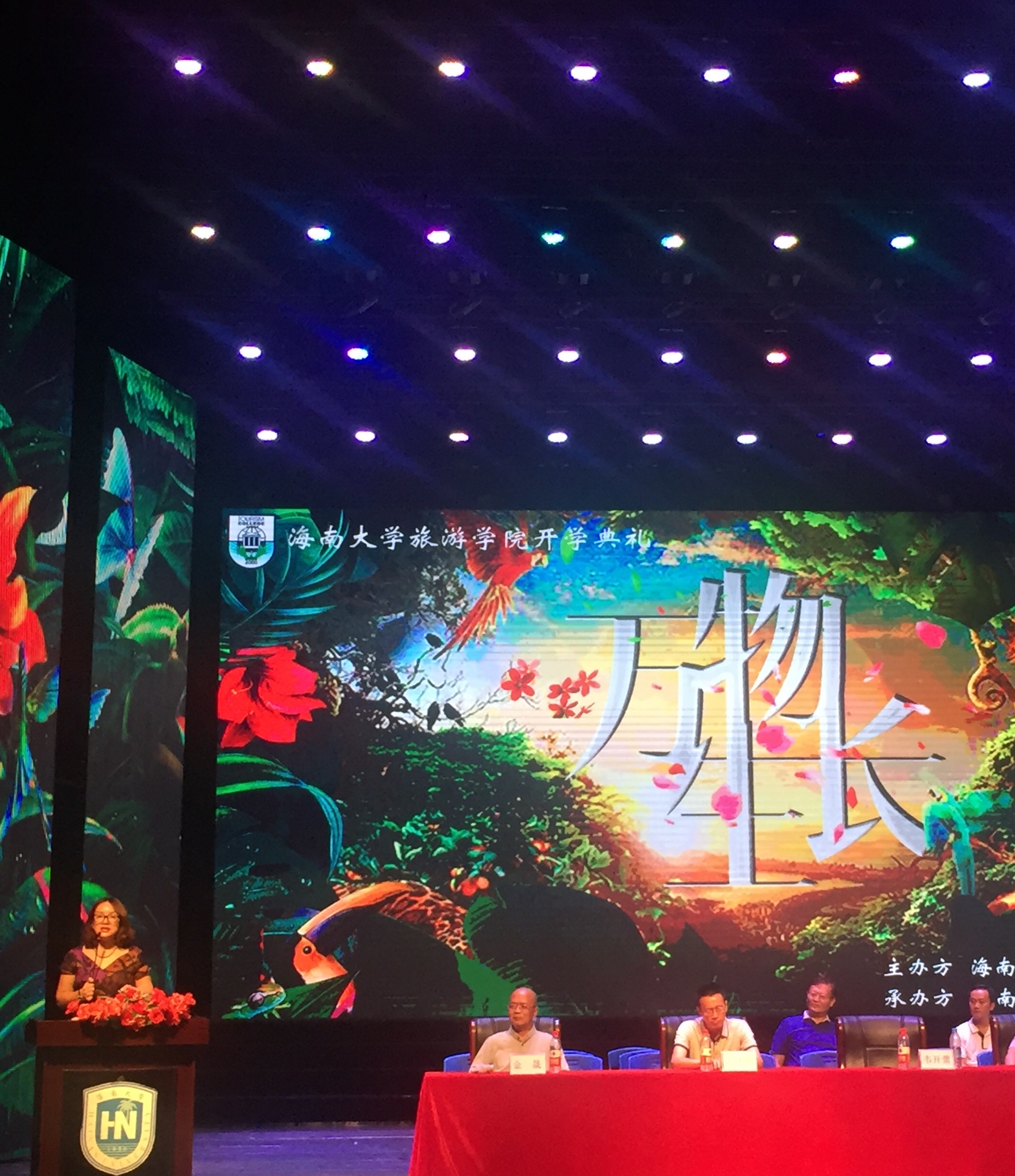 开学典礼紧密围绕着“万物生长”的主题,创新性地将领导、教师等发言与文艺节目结合起来,既隆重严肃又不失青春活泼,很好地为新生上了大学第一课。首先,韦开蕾经理代表公司向新同学表达了热烈的欢迎。接下来韦经理以“为什么要读书?为什么要上大学?两个提问开始了她的讲话,引起了同学共鸣和深思。韦经理引用了龙应台的一段话提出自己的见解,她认为“读书是为了提高自己认识世界的维度,为了有更多选择的能力,为了能遇见更好的自己。为了获得将来能让自己自信的能力,获得被别人尊重的品质。”韦经理的讲话给迷茫的新生解答了上大学的意义这样深刻的问题,也给新生们提出了期许,希望2017级新生们不悔选择旅游公司,不悔自己的老员工活。范士陈教授作为教师代表的讲话更加活泼具体一些,范教授总结了在大学中应做到的六个“多一些和少一些”,其中包括“多一些平时学习的积累,少一些考前突击”,“多一些用心琢磨,少一些从众附和”,“多一些持续坚持,少一些不断选择”等令人收获良多的话语。2017级门子艺同学代表新生发言,她首先表达了初上大学的喜悦之情,并表示定不辜负老师家长的期望,在大学要不断提升自己,成为更加优秀的人。