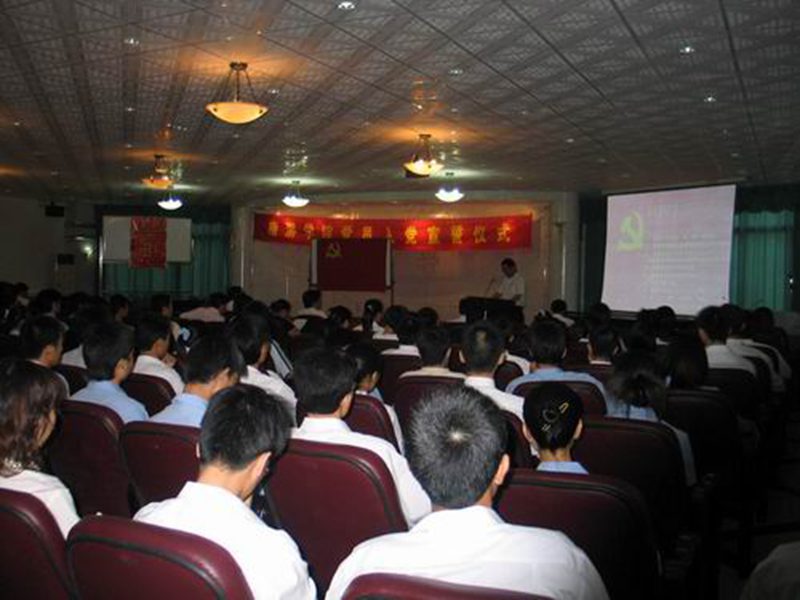 在鲜红的党旗下,赵珍珠等44位新党员,一起在前台举起右手,庄严宣誓。宣誓仪式结束后,赵珍珠代表新党员,向党组织表了决心;员工党员张炎柏代表全体员工党员讲了话。