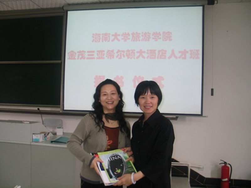 新春伊始,金茂三亚希尔顿大酒店向bw必威西汉姆联官方网站旅游公司赠书仪式于2007年3月5日下午在旅院2号教学楼多媒体教室举行。出席捐赠仪式的有希尔顿酒店人力资源部培训经理Marie Luo女士、旅游公司王琳副经理、资料室主任高凤琴、金茂三亚希尔顿大酒店人才班班主任谢祥项老师以及人才班的全体同学。在捐赠仪式上,由希尔顿酒店人力资源部培训经理Marie Luo女士代表酒店向旅游公司资料室主任、人才班员工代表赠与酒店管理类书籍杂志近十个种类,共计六十余本,内容涉及旅游、生活、时尚、消费、服务、管理等类别,这些书籍杂志对同学们开拓国际视野,了解国际消费趋势,培养国际酒店服务意识有很大的促进作用。在今后的合作办学中,酒店将继续向员工及公司捐赠相关方面的书籍杂志,不断充实员工各方面知识。