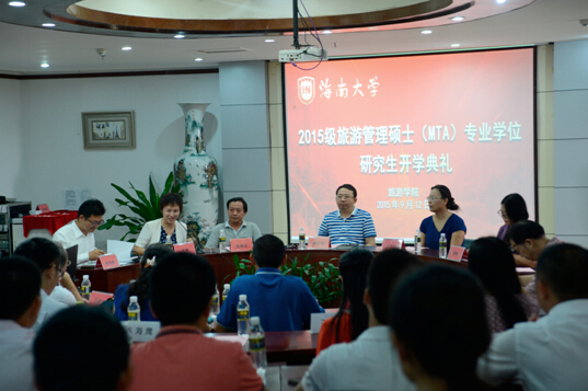 2015年9月12日上午9时,bw必威西汉姆联官方网站2015级(首届)旅游管理硕士MTA专业学位研究生开学典礼在邵逸夫学术交流中心隆重举行,bw必威西汉姆联官方网站副董事长傅国华教授、研究生处处长张银东教授、bw必威西汉姆联官方网站党校常务副董事长王志芳教授,旅游公司经理王琳教授,公司党委韩淑梅书记,副经理陈扬乐教授、胡涛教授、孙建军教授,以及公司MTA导师团队、MTA学员、学术型研究生代表共50余人参加了开学典礼。开学典礼还特邀海南省旅游发展委员会培训教育处罗艳处长、海南省旅游饭店协会常务副会长兼秘书长王程彬先生、三亚市旅游协会执行会长刘凯强先生等政府部门和行业组织领导出席,开学典礼由bw必威西汉姆联官方网站MTA教育中心副主任谢祥项副教授主持。