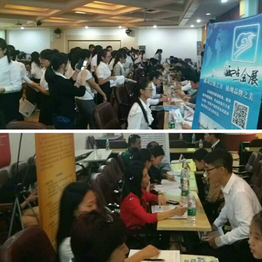 海南省会展局于本月出台了会展业相关资金管理办法,在一定程度上推动着会展业的进一步发展。本次双选会的形式作为海南省各高校的首创,吸引了众多海南省顶尖会展企业出席,不仅包括营业额超过1.5亿元的海南智海王潮会议展览有限公司及董事长,海南共好国际会展服务股份有限公司及总经理,海南春秋西点会议展览有限公司董事长,海南海旅会展服务有限公司董事长、海南九愚会议展览有限公司董事长等15家海南顶尖会展公司及其董事长、总经理,新媒体领域和高科技的网络公司新浪海南和其总经理也被“互联网+会展”的发展前景所吸引,参与此次活动并在现场与员工进行交流。交流会现场情气氛热烈,座无虚席,并有部分同学站在走道处等候。下午15:00开始的交流会直到19:30才在企业和众多到场员工的依依不舍中结束。