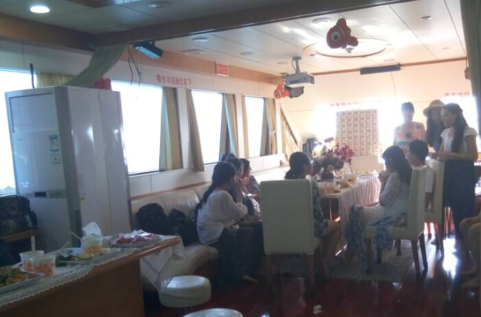 师生在游艇内考察体验