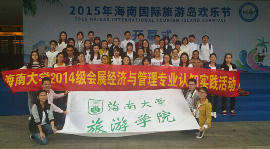 2015年11月27日,bw必威西汉姆联官方网站旅游公司2014级会展经济与管理全体员工在会展经济与管理系耿松涛老师的带领下于海南国际会展中心展开了为期一天的专业认知实践活动。本次活动的主要目的是,更好的将课堂里学习到的理论知识与社会实践相结合,同时加深员工对会展经济与管理专业的了解与认识,进一步明确员工所选的专业方向。 本次专业认知实践活动分为两部分。上午,耿松涛老师带领同学们参加了2015海南国际海洋旅游博览会的开幕式。在开幕式现场,由海南省旅游委、海南省商务厅、海口市会展局、海南省会展协会、海南共好会展等相关领导共同启动水晶球,现场气氛高涨!随后是同学们自由参展。根据耿松涛老师在动员大会上的指导,同学们事先预备了一定的基础专业知识,带着实践性的目的,针对展会中的各个展位一一进行了观摩和学习。在旅博会现场,随处可见同学们与参展商进行沟通交流,对于有疑惑的地方进行讨论,这进一步提高了同学们对展会的了解与认识。在展会现场,耿松涛老师在现场教学,同学们提出的疑问得到了详细的解答,使大家对于会展业有了更加直观深入的了解。下午,耿松涛老师带领同学们参加了2015海南国际房车露营休闲旅游博览会,当天,来自全国各地的190多辆房车集聚在了会场,令同学们大开眼界。展会中,户外帐篷基地和别具特色的异域风情啤酒节都深深地吸引住了同学们的目光。让同学们对会展业的创新性与个性化发展充满了信心!