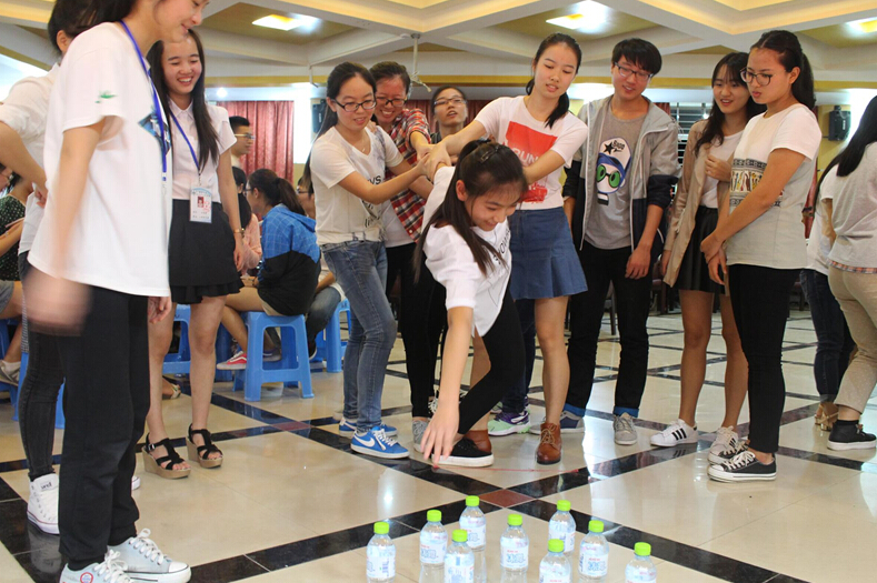 心理委员们正齐心协力拿水瓶