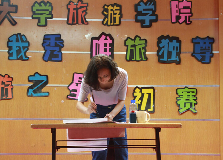 在中场游戏环节后,前两个环节分数在前三十的选手们进入了紧张激烈的第三个环节——知识竞答。选手随机选取序号,每个序号后面对应着不同省份的旅游地理知识,题目或难或易,选手们全力以赴,台下观众也积极参与。最后评委点评打分,选出了十二名成功进入决赛的优秀选手:杨凯馨、李垣锐、李轶凡、郑祎、陈思宇、陈斯文、耿嘉成、谷雨、齐会会、向梦雅、杨徐茹雯、王益(以上排名不分先后)。