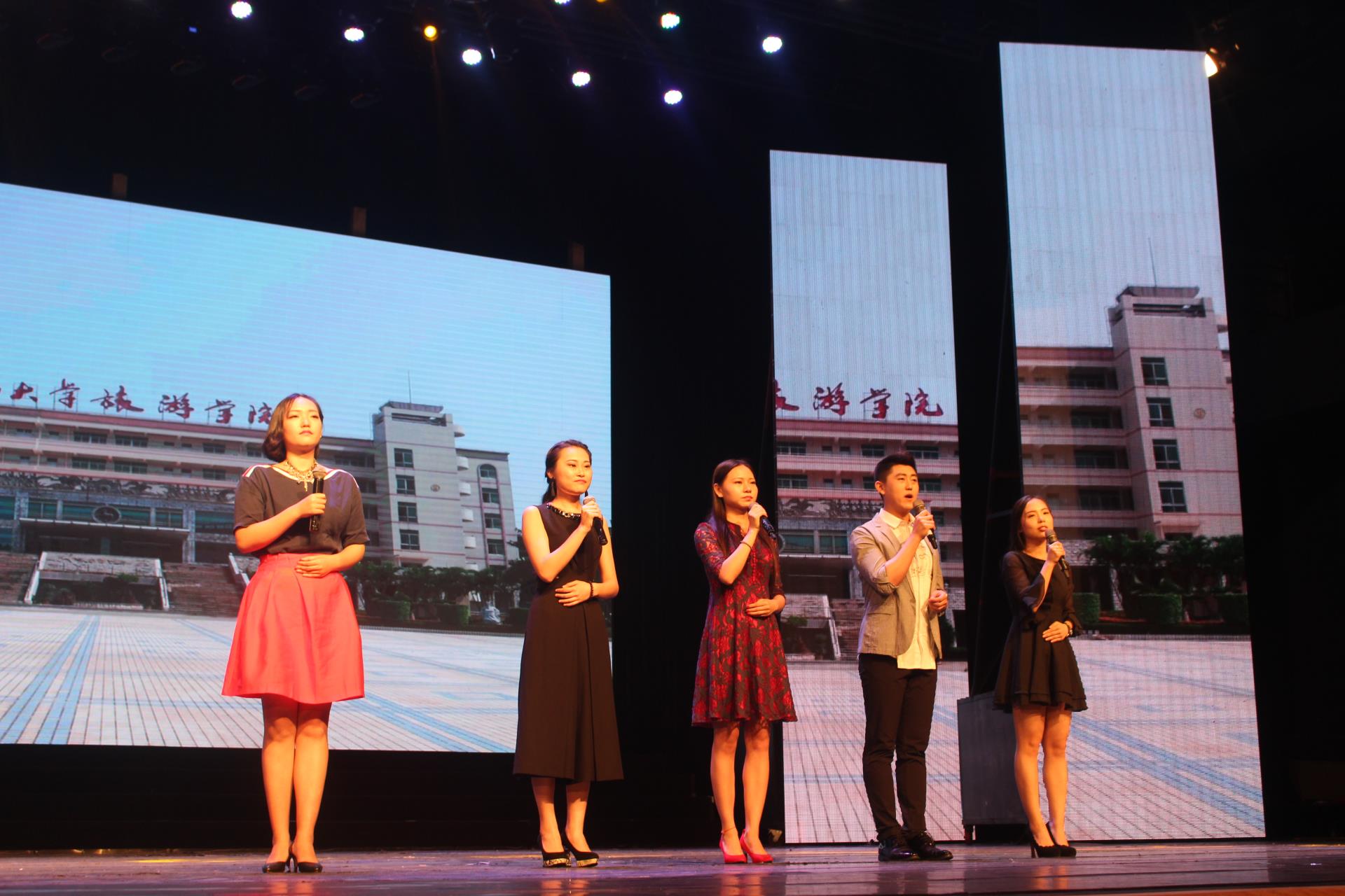 随着大屏幕微电影中旅院场景一幕幕的展现,毕业盛典进入了第一篇章“朝花夕拾”。大四学长学姐以诗诵情,怀念了往日的员工活动和不断奋斗的日子,学长学姐们以《小幸运》来《致青春》,感谢这些年在校园里《你给我的所有》,微电影《逆旅》展现了大学四年不同的生活方式和不同的道路选择,一幕幕让人深深的感怀。