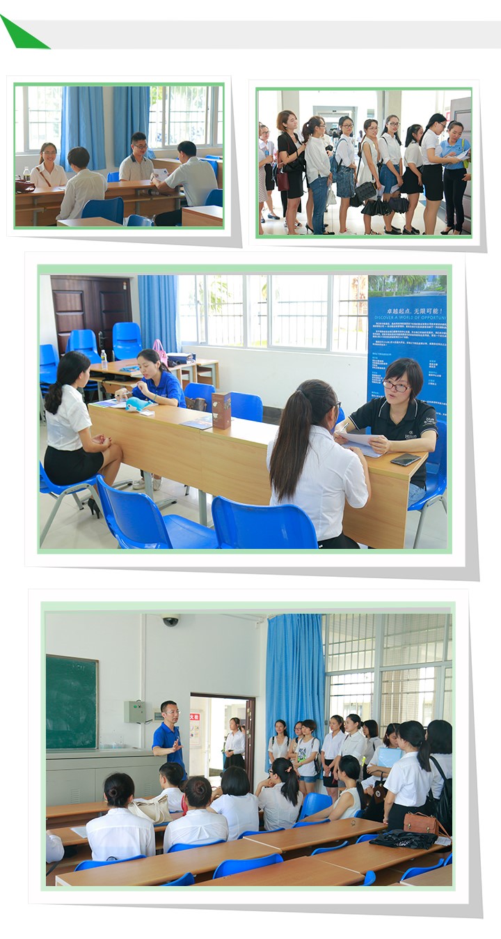 为进一步对接海南酒店业人才需求,深化校企合作,满足酒店用工需求,促进毕业生高水平实习和就业,旅游公司及酒店管理系精心组织筹划了这次专场招聘会。现场活动由实习说明会、酒店宣讲会以及现场面试三部分组成。