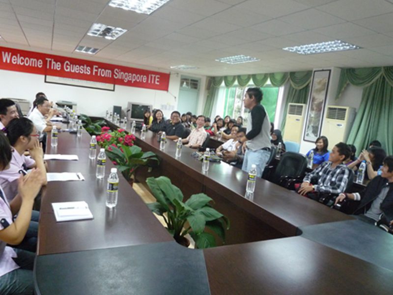 在一阵热烈的掌声中我们迎来了新加坡的同学们。为表示友好,拉近双方距离,每一个到场同学都做了一个简短的自我介绍。旅游公司的同学们热情好客,ITE旅游公司的同学们也十分的随和,新加坡师生对公司员工流利的英语口语表示称赞,现场气氛变得很轻松。