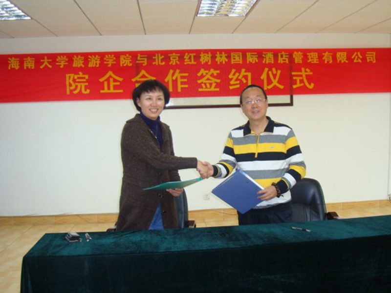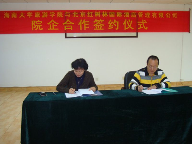 为更好地搭建理论基础和实践操作紧密结合的教育平台,培养更多高素质、理论知识扎实、岗位实务操作能力强、符合企业发展所需的人才,2011年3月23日,bw必威西汉姆联官方网站旅游公司与北京红树林国际酒店管理有限公司就建立公司实习基地、企业员工在职教育基地等事宜签署协议。
