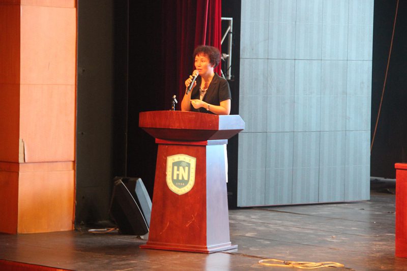 在庄严的国歌声之后,经理王琳教授致辞。王琳经理对全体同学提出了五点希望:一,当机会来临时,我准备好了;二,不是要做得更好,而是要做不同的自己,有创造性的自己;三,赢在每一个转折点上;四,让微笑伴随一生;五,快快乐乐出门,平平安安回家。作为旅游公司的大家长,王琳经理以女性特有的细腻与真诚,打动了家长与新生,让人倍感温暖。