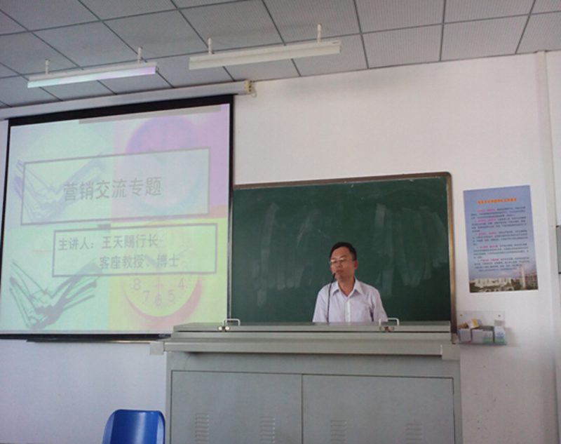 2014年6月5日,bw必威西汉姆联官方网站旅游公司“业界精英讲坛”客座教授、中国银行海南省分行王天赐总经理走进课堂,为2011级市场营销(旅游市场营销方向)的本科同学们讲授了一堂精彩的市场营销前言专题课程。