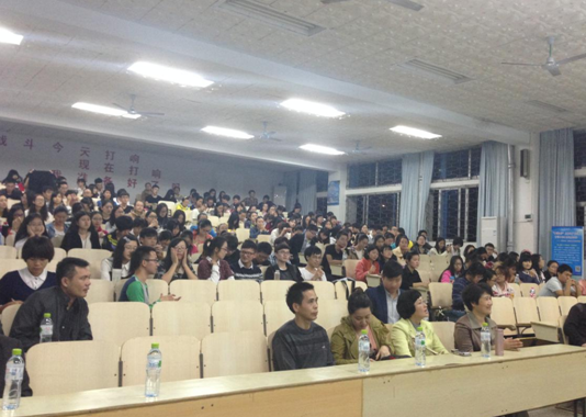 在向同学们讲述了海南省会展的发展现状,海南省会展的发展道路之后,蒋会长通过其个人的几十年来的工作经验,向海大学子提出了学会做人、学会做事、练好内功等六点非常中肯、实用的建议,这为我们今后走上工作岗位、实现自己的价值提供了宝贵的建议。在讲座进入尾声阶段,同学们和蒋会长进行互动交流,整个讲座也进入了高潮,同学们积极踊跃提问,蒋会长也耐心细致地逐个回答同学们的问题,整个互动环节气氛热烈,时间已是晚上10点半,讲座即将结束了,但很多同学仍觉得意犹未尽,希望再有机会向蒋会长学习交流。
