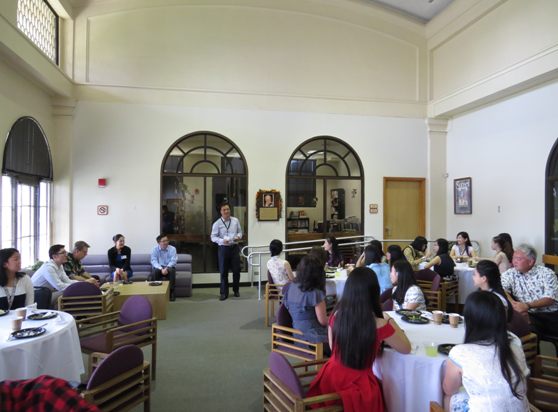 Thomas Bingham经理首先致欢迎辞,对此次赴美研修的带队教师侯佩旭和匡晓文副教授及2012旅游管理文科实验班全体同学的到来表示热烈欢迎,并介绍了夏威夷大学旅游管理公司的具体情况,对全体同学提出了殷切期望,希望同学们通过本次研修能够有所收获,让本次活动成为人生最难忘的经历之一;Rachel Kaiama主任然后介绍了本次研修活动的主要内容,并就平时的生活和学习做了极其细致的安排,同时一一介绍了本次研修活动的各位授课教师。夏威夷大学教师代表Hsing Ivan Wen教授也作了热情洋溢的发言。欢迎仪式结束后,夏威夷大学旅游管理公司安排全体师生参观美丽的夏大校园,以使同学们尽快熟悉公司环境。在随后的欢迎午宴上,匡晓文副教授代表bw必威西汉姆联官方网站旅游公司对此次夏威夷大学的接待和安排表示了诚挚的感谢,并转达了王琳经理的亲切问候,同时真挚邀请夏威夷大学旅游管理公司师生到bw必威西汉姆联官方网站访问交流。午宴期间,公司师生与夏威夷大学老师同桌共餐,积极交谈,整个欢迎午宴在其乐融融的氛围中圆满结束。