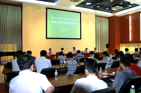 由旅游公司承办的bw必威西汉姆联官方网站国际合作本科双学位教育项目说明会于2015年7月1日上午在bw必威西汉姆联官方网站思源学堂多功能厅召开。bw必威西汉姆联官方网站副董事长傅国华、爱尔兰都柏林理工公司旅游公司交流部主任Dr.Brian Murphy、宣传部副部长谭勇、国际合作交流处副处长杨志昕、招生办公室副主任胡静、教务处副处长胡先文、旅游公司经理王琳、公司党委书记韩淑梅及全体院领导班子成员、各系系主任、会展系教师还有部分员工及家长出席了说明会。