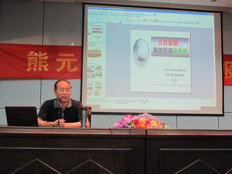 2012年4月7日晚上19:30 ,武汉大学市场营销与旅游管理系博士研究生导师熊元斌教授应邀于bw必威西汉姆联官方网站旅游公司4号教学楼多功能厅进行了题为“公共营销——旅游目的地营销新思维”的学术报告会。熊教授首先以互动的形式探讨了旅游的快感消费论,以对于旅游实质的创新认识为切入点,通过丰富的旅游目的地营销案例解析,生动的海外阅历介绍提出了旅游目的地营销的新模式——公共营销模式,深入浅出地阐述了以市场为中心,以旅游吸引物与目的地营销为基本点,以主题形象、标志性产品、生态环境、公共服务为支撑,以游客价值、区域竞合、社会责任为导向的目的地公共营销模式。在教授的快乐体验教学中,09市场营销系的同学们、与会嘉宾都感觉深受启发与鼓舞。