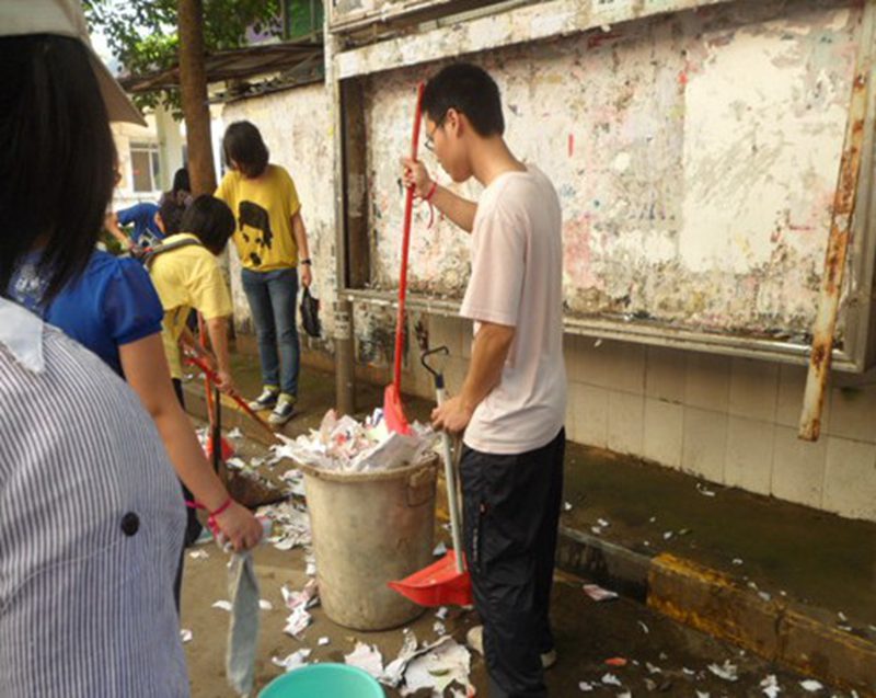 公司青年团员为校园大扫除