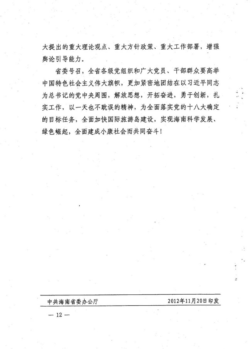 附件:《中共海南省委关于学习宣传贯彻党的十八大精神的意见》(琼发[2012]14号)
