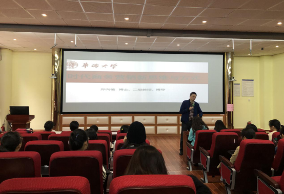 专题授课后,郑向敏教授紧扣旅游热点,在9教3D实验室面向旅游专业全体员工开设了《新时代商务营销新思维与方式》专题讲座。讲座伊始,郑教授回顾了传统的旅游营销方式,分析了当下旅游消费者的新思维、新特征,接着结合商务营销案例,阐述了旅游营销需把握的关键要素,最后提出以微电影、微信软文、抖音短视频、VR等方式进行旅游创新营销。讲座干货十足,现场氛围活跃,同学们受益良多。