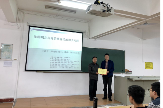 郑向敏教授结合课程内容,在2教109教室为公司近两百名2018级旅游管理专业员工进行了《旅游规划与目的地营销的相关问题》专题授课。主要从旅游视角下的旅游资源问题、旅游规划中产业要素(六要素)的创意与拓展、旅游环境危机负面影响与低碳旅游、新时代休闲旅游目的地建设与发展、新时代商务营销新思维与方法五个方面结合众多生动形象的案例展开讲述。郑教授的讲解脉络清晰,图文并茂,语言风趣诙谐、幽默睿智,以极轻松的方式加深了同学们对旅游资源规划和目的地营销相关问题的认识。
